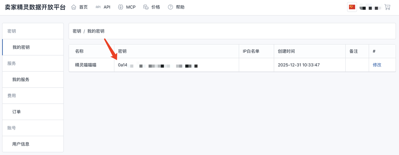 1、进入卖家精灵MCP页面注册并完成购买:https://open.sellersprite.com/pricing/mcp